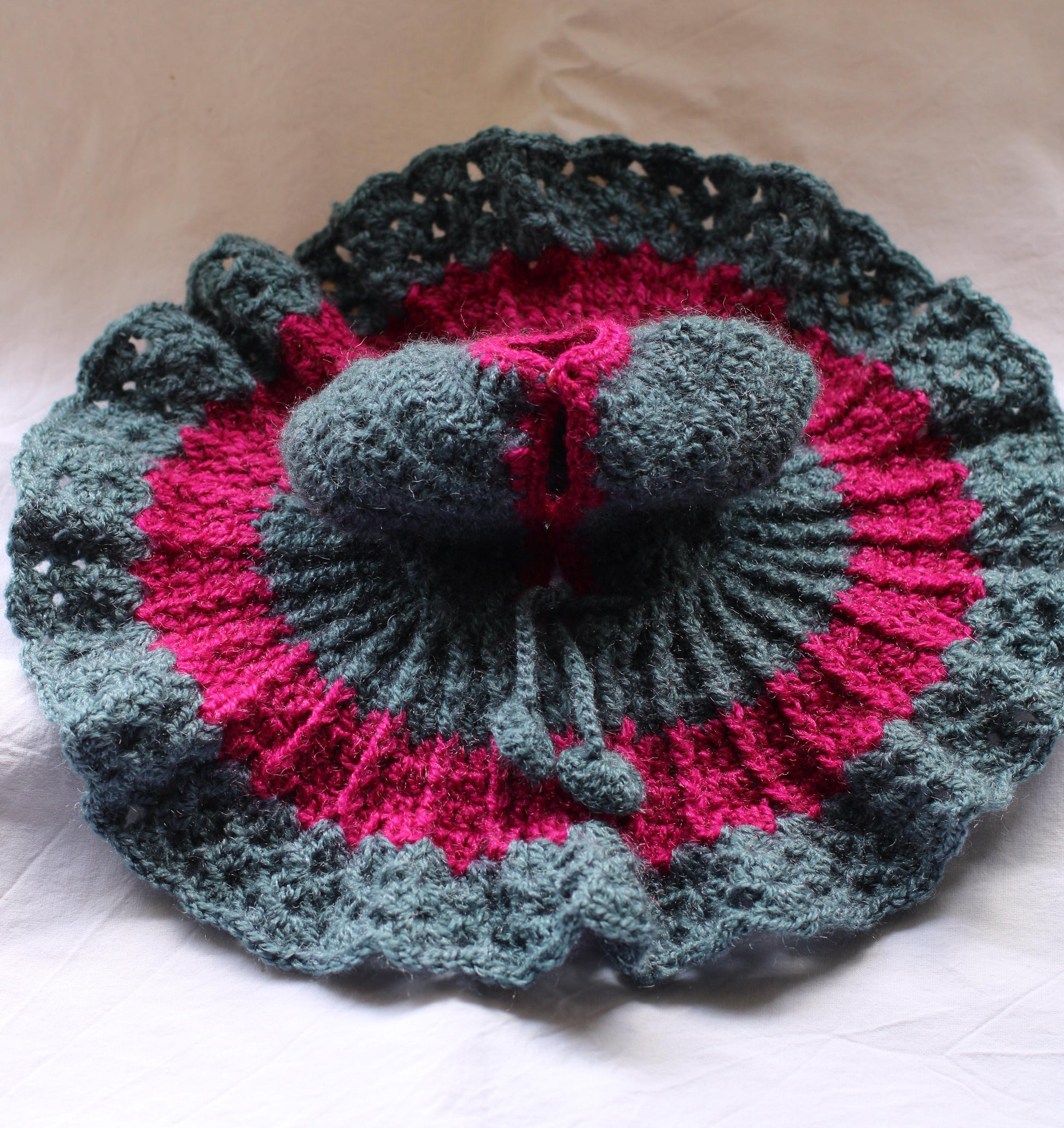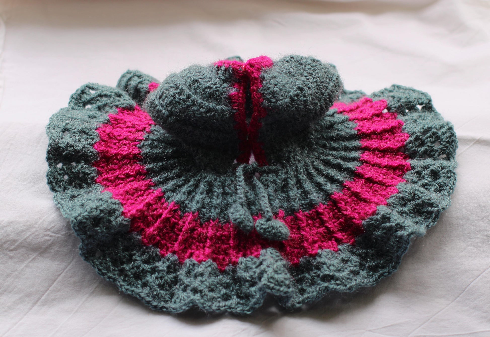 Expertly handcrafted with premium quality and soft, durable yarns, these crochet Laddu Gopal Poshaks are designed for comfort and longevity. The elegant frill patterns add a touch of sophistication, while the customizable fit makes them suitable for various sizes. Elevate your deity's wardrobe with these exquisite dresses.
