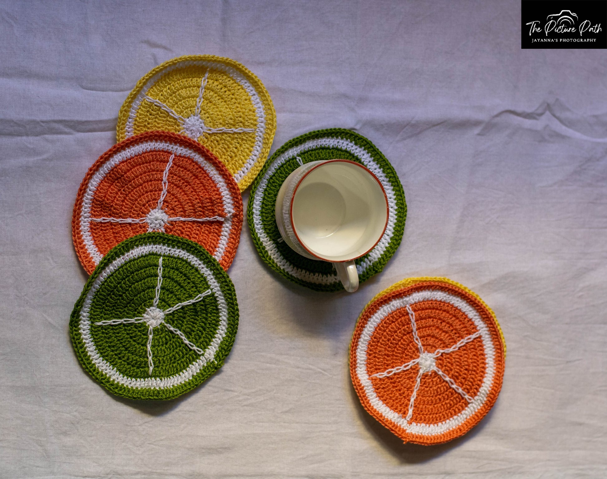 These are lemon Coasters, made from anchor thread and they come in a pack of six pieces.